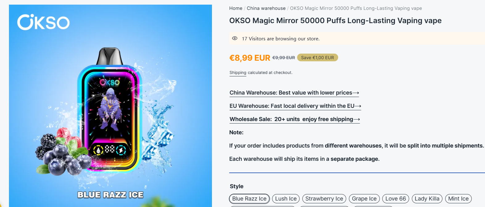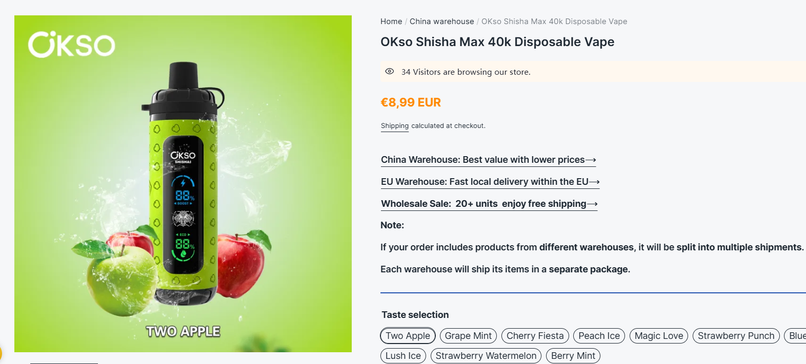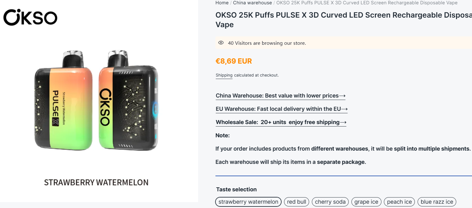 However, this product is relatively hard to source and not widely available online. As an alternative, we recommend a similar product available on our website with better pricing and stable supply: OKSO Shisha Max 40k Disposable Vape