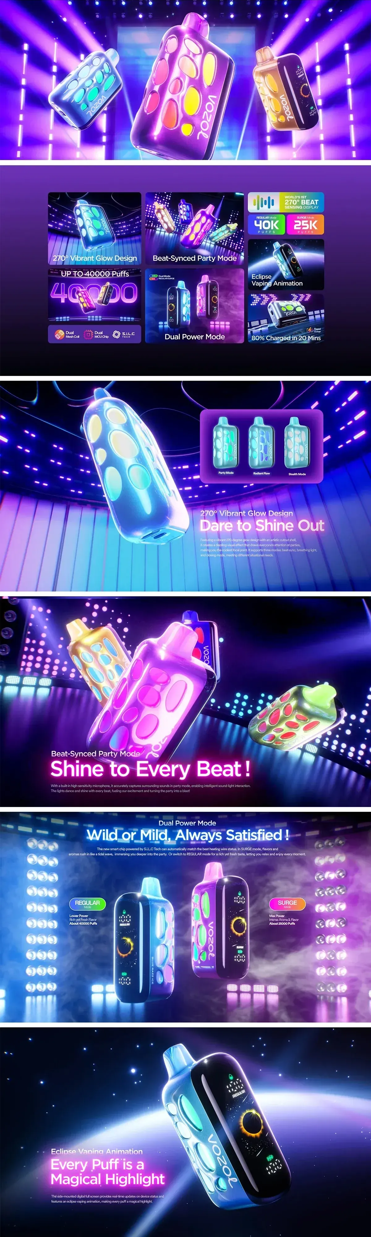 VOZOL RAVE 40000 Puffs Disposable Features: